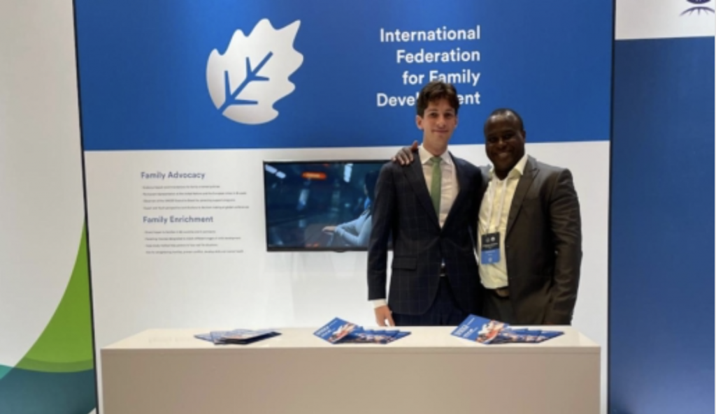 On May 22–23, IFFD President Olivier Yao participated in a panel discussion on the challenges families face in the digital age at the International Family Forum in Istanbul, a high-level conference on family issues organized by the Turkish Ministry of Family and Social Services. He emphasized the need to shift from reactive to proactive policies, advocated for the digital inclusion of parents, and highlighted the role of families as nurturing grounds for values, not merely consumers of digital content. IFFD also hosted an interactive booth, managed by our representative Timothy O’Neill, which engaged attendees and promoted our mission to strengthen family-oriented policies and empower young advocates.